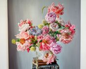 Flowers’ visual and tactile qualities, as well as their associations with love, femininity, and the natural world, have contributed to Husslein’s colorful compositions. The artworks focus more on the colors, lighting, textures, and botanical details which make Husslein’s paintings so intriguing.